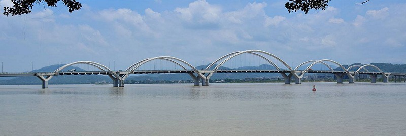 广东金山大桥(世界上跨度最大的斜靠式钢管混凝土拱桥,跨度160m)
